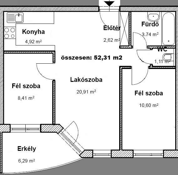 | Erkély | 6,29 m² |