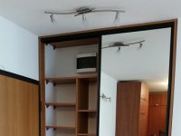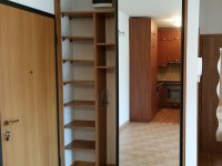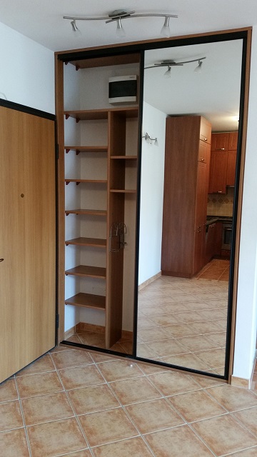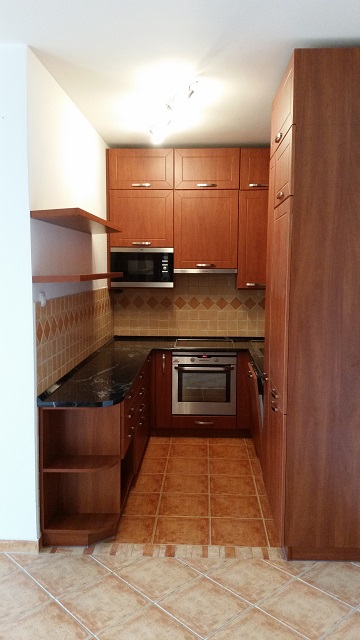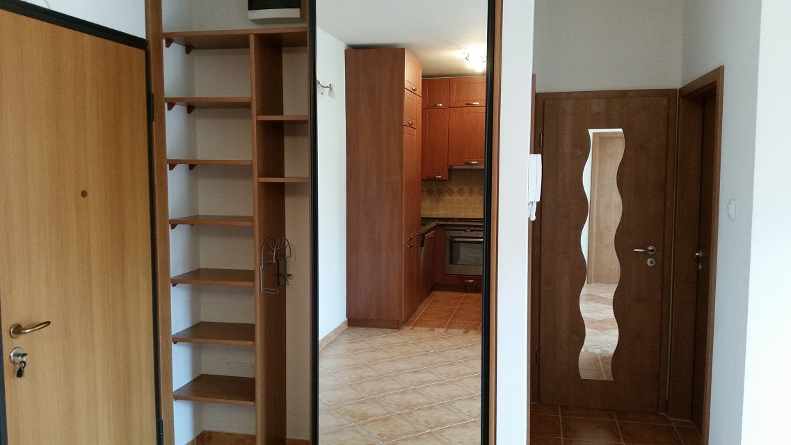 A konyhában gépekkel beépített konyhabútor, (alulfagyasztós kombinált hütőszekrény, mosogatógép, elszívó, indukciós főzőlap, elektromos, légkeveréses sütő), az előszobában beépített gardrób szekrény van. A lakás többi része bútorozatlan.